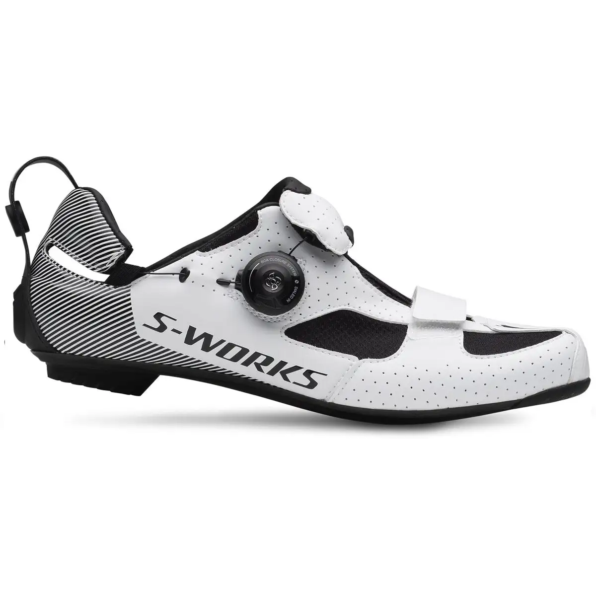 Quando ogni secondo è prezioso non c’è scarpa migliore della S-Works Trivent che vi farà uscire velocemente dalla zona di transizione. E’ una scarpa per l’agonismo triathlon con chiusura Drawbridge per ridurre i tempi della calzata, dispositivo Launch Clip per preparare le scarpe già in posizione orizzontale sui pedali, una forma che favorisce la dispersione del calore e ergonomia Body Geometry.