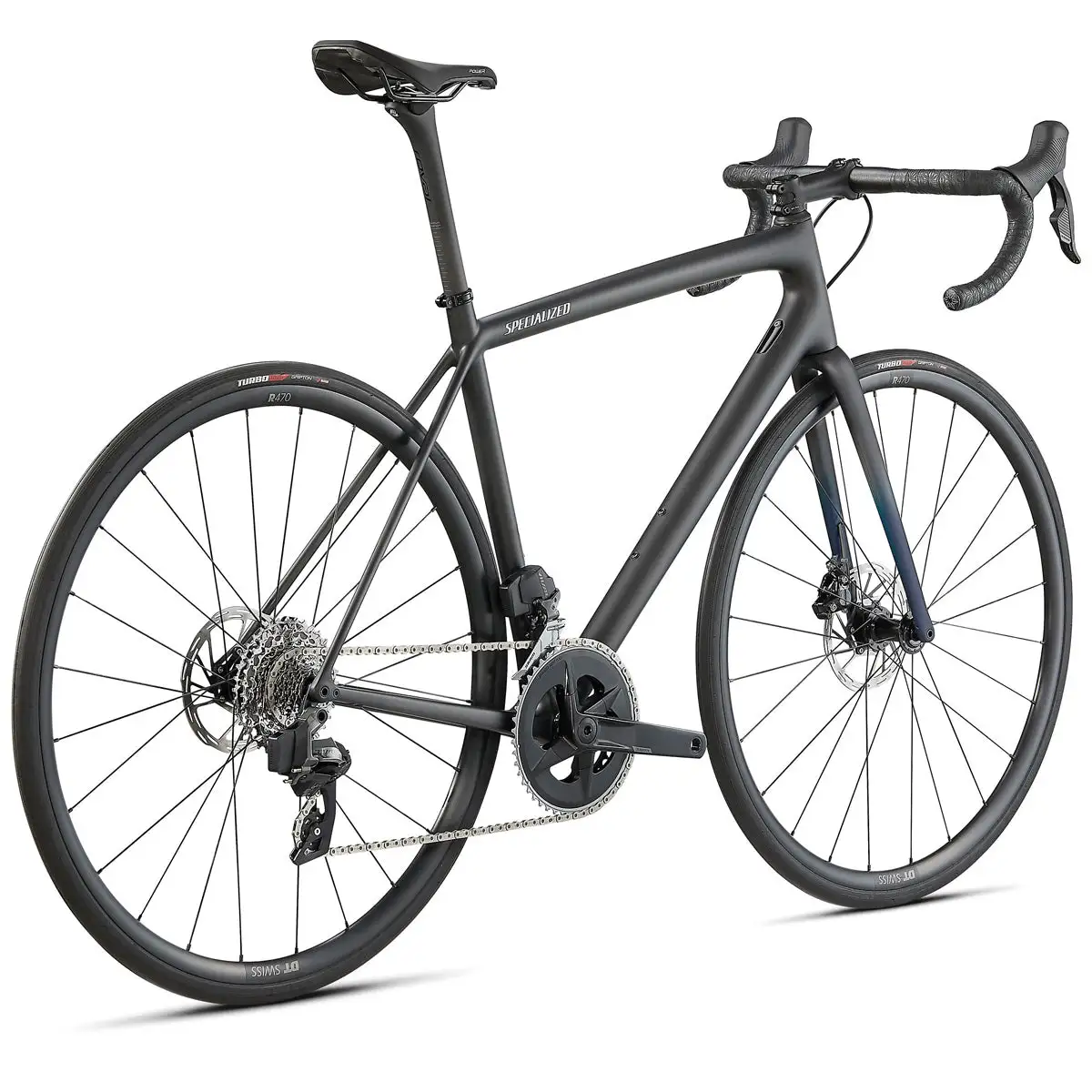 - Ruota posteriore: cerchio DT Swiss R470, larghezza interna 20mm, tubeless ready, 24 ore, mozzo perno passante con cuscinetti completamente sigillati Specialized, disco centerlock, raggi in acciaio inossidabile DT Swiss Champion 14G, nippli in ottone DT Swiss.