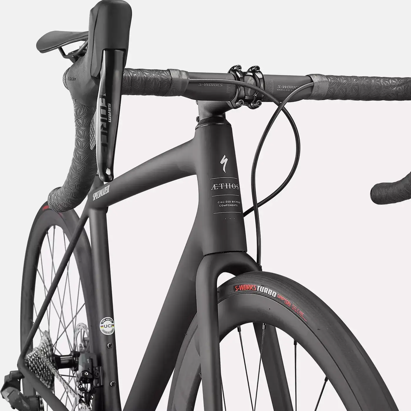 - MANUBRIO: S-Works Short & Shallow, 123mm Drop, 75mm Reach w/Di2 Hole.