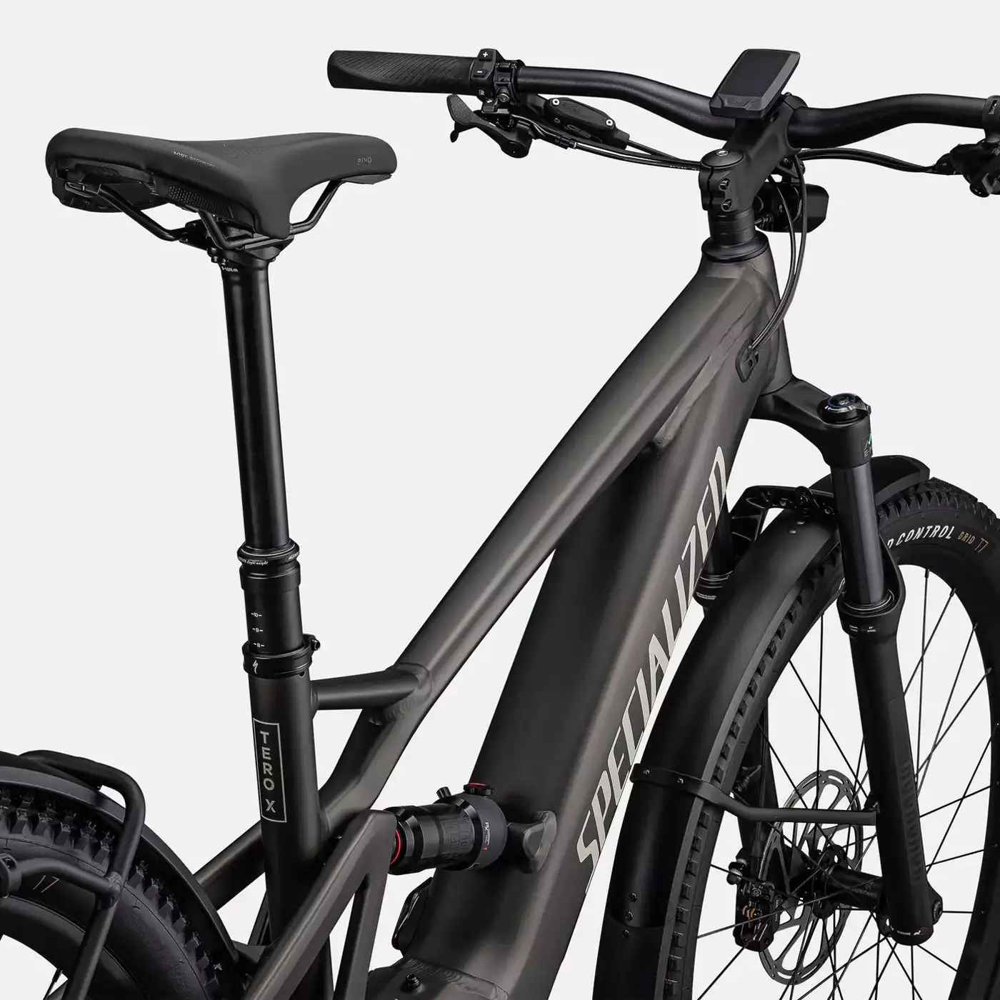 La Turbo Tero X è una e-bike in grado di andare ovunque, su qualsiasi terreno, e allo stesso tempo ti permette di portare tutto quello che ti serve. Con la Turbo Tero X, puoi vivere nuove avventure con un’assistenza fluida e confortevoli sospensioni. POTENTE: Pedala su sentieri lontani grazie alle fluide prestazioni del motore Specialized Full Power 2.0E con il Turbo Operating System. Lo stesso motore delle nostre Turbo Levo, testato sui terreni più impegnativi, nelle condizioni più proibitive, una garanzia di qualità. Il sistema operativa intelligente si integra perfettamente con il software e l’hardware dedicati. Il display Mastermind con l’integrazione della nostra app Mission Control gode di aggiornamenti over-the-air, agevola l’ottimizzazione dell’autonomia, permette una regolazione fine, diagnostica avanzata e altro ancora. CONFORTEVOLE: La Tero X con le generose sospensioni sull’anteriore e sul posteriore è in grado di affrontare qualsiasi terreno. La posizione semi eretta, gli apprezzatissimi pneumatici Ground Control e la confidenza regalata dal reggisella telescopico rendono semplice e confortevole esplorare percorsi accidentati con la necessaria sicurezza. VERSATILE: Pedala oltre l’orizzonte con tutto quello che ti serve. La Tero X è equipaggiata con potenti luci. Il portapacchi posteriore integrato ha una portata di 20kg ed il telaio è predisposto per il montaggio di un portapacchi specifico anteriore, con una portata di altri 10 kg.